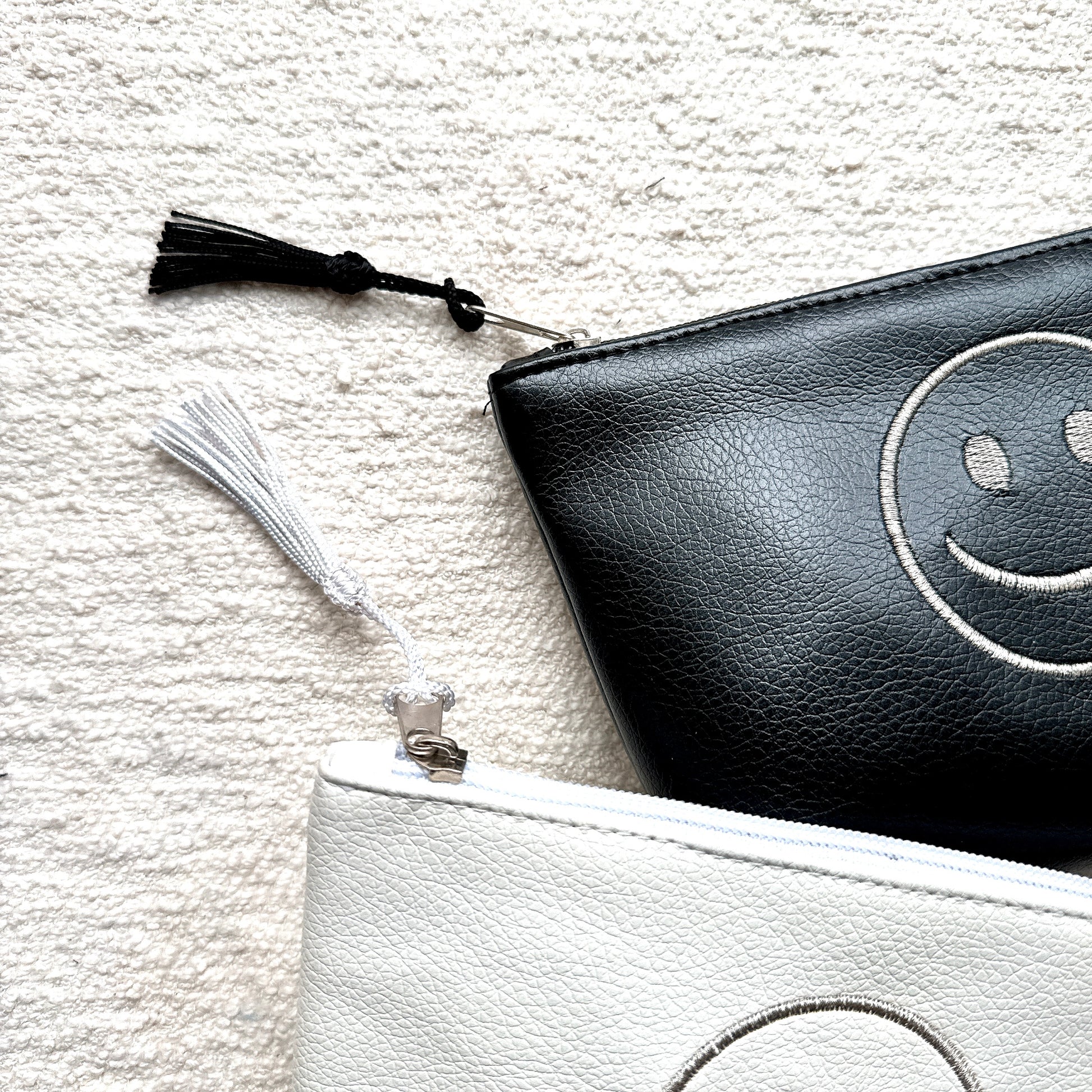 Smiley embroidered pouch Medium Size Brack x Sirver
