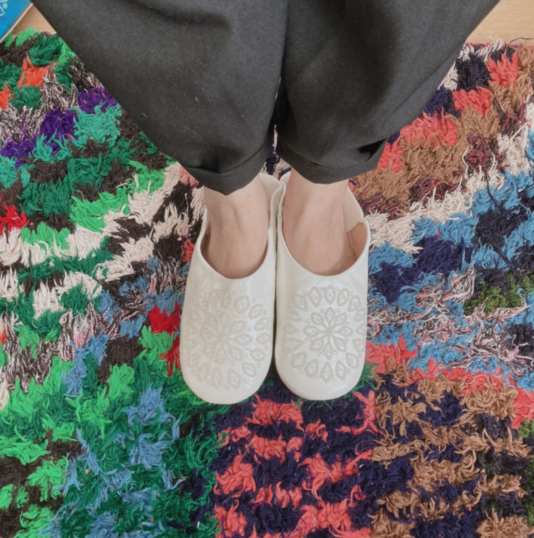 ● Because we do not venture in artificial deodorization, our babouche have the peculiar scent of natural leather. Especially immediately after purchase the scent may be a bit strong, but usage will cause it to fade.